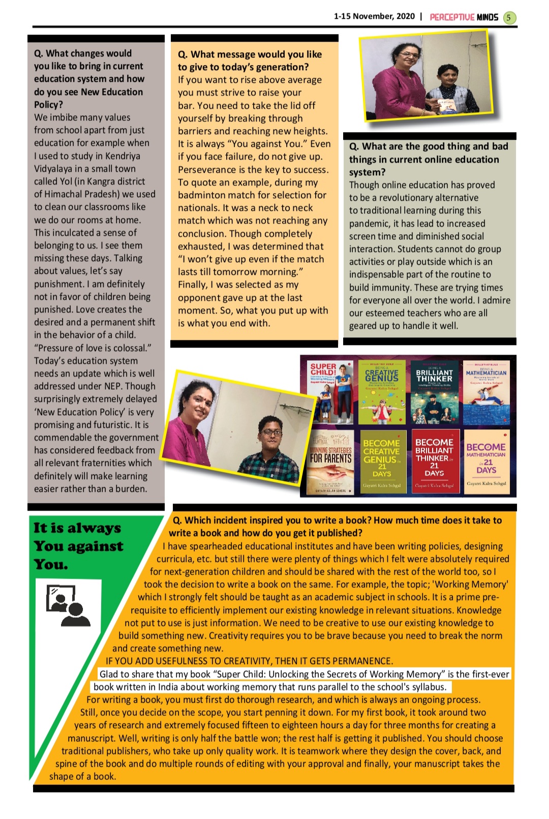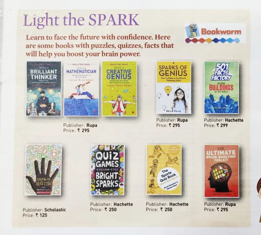 Sunday, 17th May 2020 5:30 p.m.Candid capture of Jaasrita enjoying SUPER CHILD!Unlocking the Secrets of Working MemoryIn the kids pull out of ‘THE HINDU’ BEING A BRILLIANT THINKER, BEING A MATHEMATICIAN and BEING A CREATIVE GENIUS Humbled to see my four books on one shelf at Crossword Bookstore, Phoenix Mall. Humbled to see my four books on one shelf at Crossword Bookstore, Phoenix Mall.
