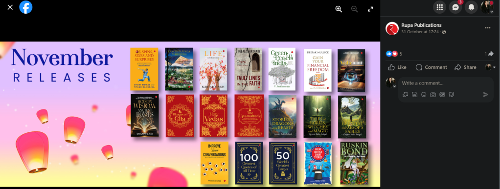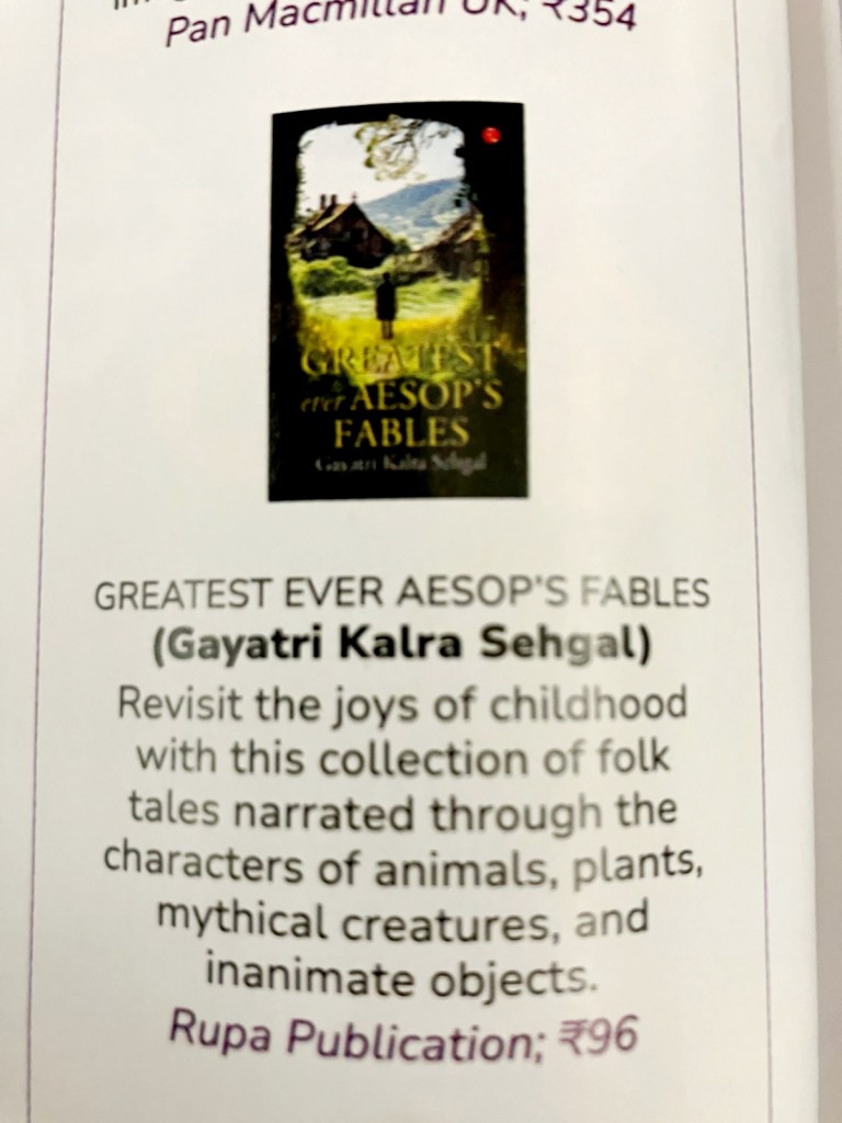 PUNE BOOK FESTIVAL, DECEMBER 2024 RUPA PUBLICATIONS, SHOWCASING MY BOOKSPUNE BOOK FESTIVAL, DECEMBER 2024 RUPA PUBLICATIONS, SHOWCASING MY BOOKSAir India’s In-flight Magazine, Edition: November 2024. Book-GREATEST EVER AESOP’S FABLES.S.P.M. PUBLIC ENGLISH MEDIUM SCHOOL Interactive Session: Beyond the Norm 18th October 2024S.P.M. PUBLIC ENGLISH MEDIUM SCHOOL Interactive Session: Beyond the Norm 18th October 2024S.P.M. PUBLIC ENGLISH MEDIUM SCHOOL Interactive Session: Beyond the Norm 18th October 2024Glad to share that four of my books made it to the ‘World Book Fair 2024’ Three Fiction: 1. Greatest Ever Aesop’s Fables 2. Stories of Dragons and Beasts 3. Tales of Fairies, Witches and Magic Non-fiction: Being a Creative Genius: Mastering Activities That Inspire Creativity