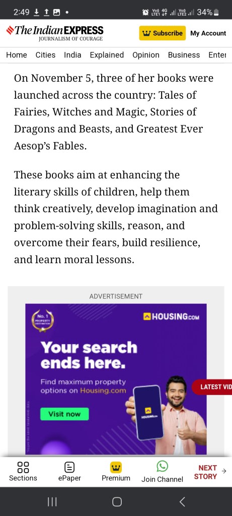 PRESS RELEASE IN INDIAN EXPRESS ON THE OCCASION OF CHILDREN’S DAY 2023